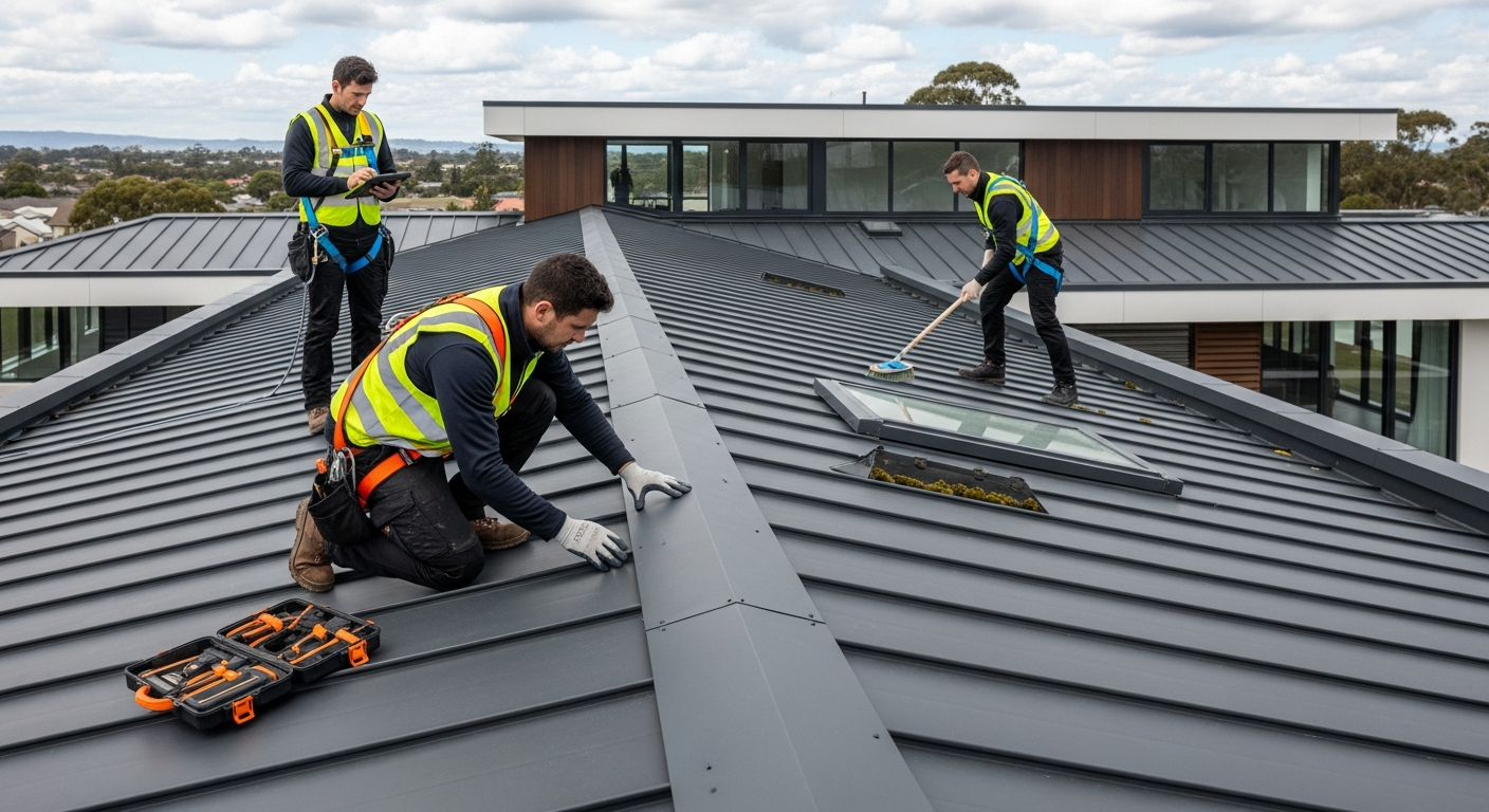 Penyelenggaraan atap logam tidak semestinya rumit, tetapi memerlukan perhatian kepada butiran dan kekonsistenan. Salah satu langkah paling asas adalah pembersihan berkala. Daun, ranting, lumut, dan kotoran lain boleh terkumpul di permukaan atap dan dalam talang air, menyebabkan genangan air atau kakisan jika dibiarkan. Pembersihan ini boleh dilakukan dengan menggunakan berus lembut dan air, atau dengan pencuci tekanan rendah untuk menghilangkan kotoran degil. Pastikan talang air dan salur buang air bersih daripada sebarang halangan untuk memastikan aliran air yang lancar.